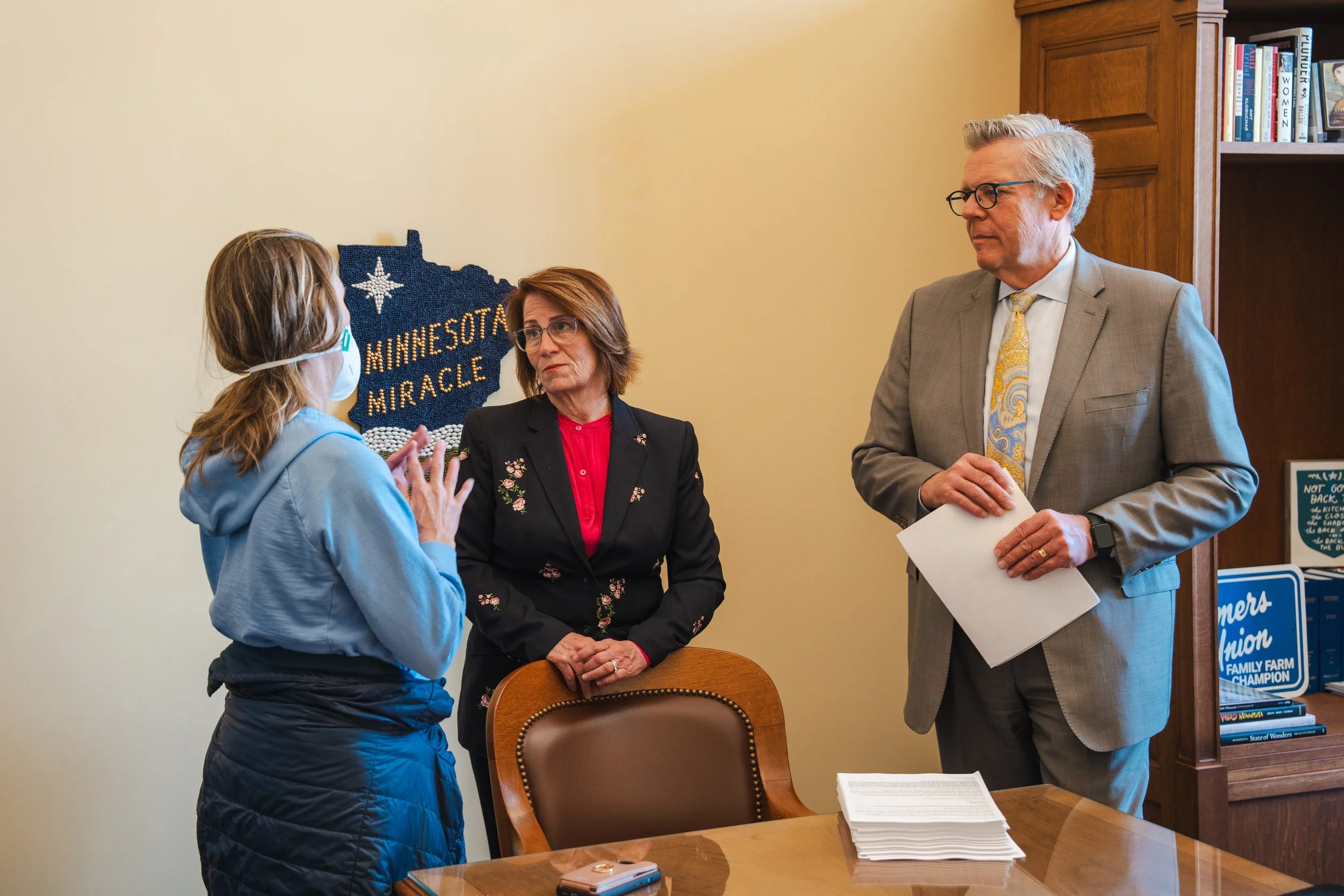 On April 21, coalition members met with late House Speaker Emerita Melissa Hortman. Photo by Devon Young Cupery.