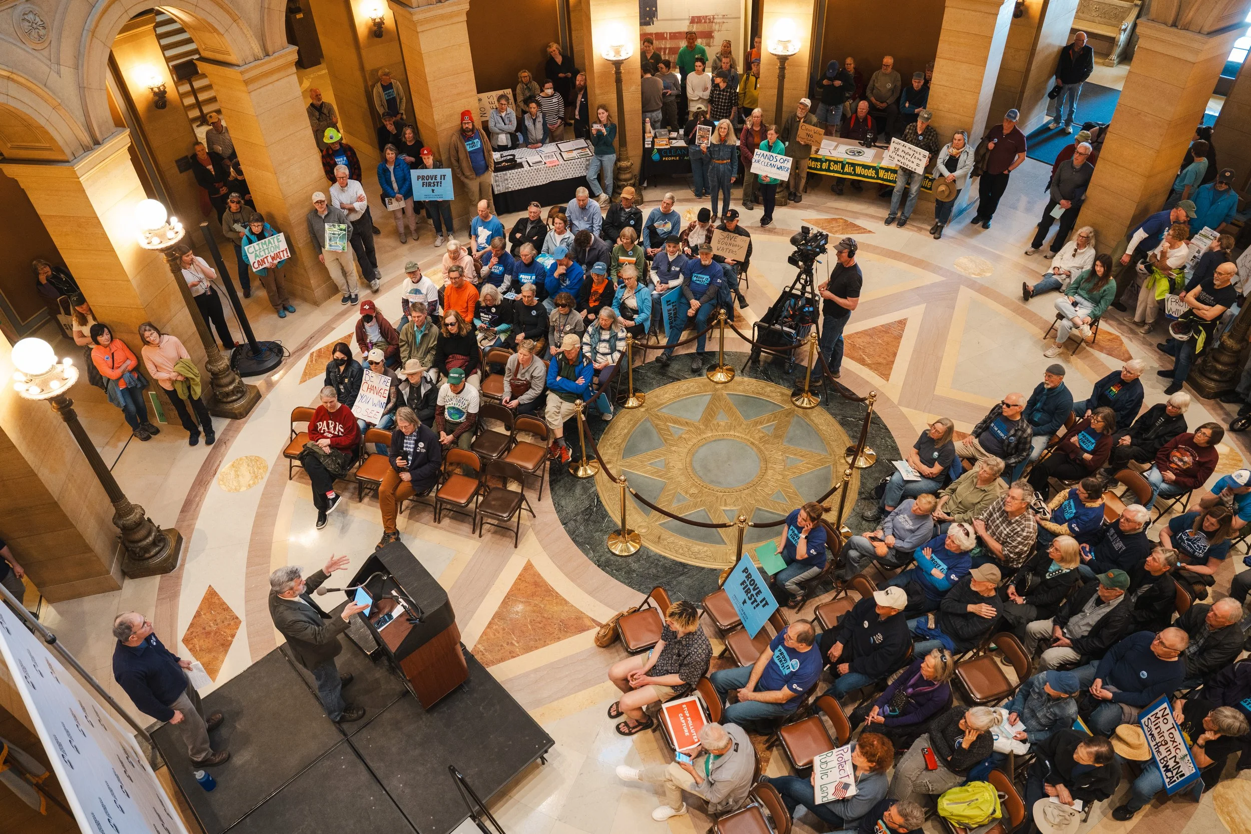 At 1:45 PM, we pulled Minnesota Senate leaders off the floor and joined the Earth Day Rally afterwards in the rotunda.